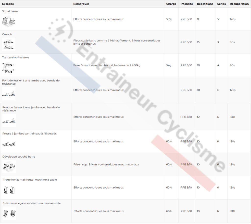 Ces trois semaines d’exercices répétés constituent une phase d’accumulation, où le volume et la charge de travail sont stables, permettant au corps de construire une base solide de force et d’endurance. Une fois cette phase terminée, vous pouvez passer à un cycle plus intensif ou varié, avec de nouvelles bases renforcées.