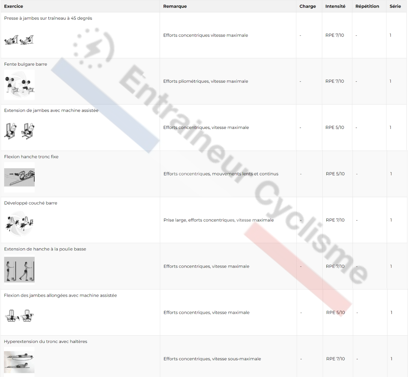 L’échauffement est primordial avant de tester votre 1RM pour éviter toute blessure et optimiser vos performances. Voici un échauffement spécifique par machine :