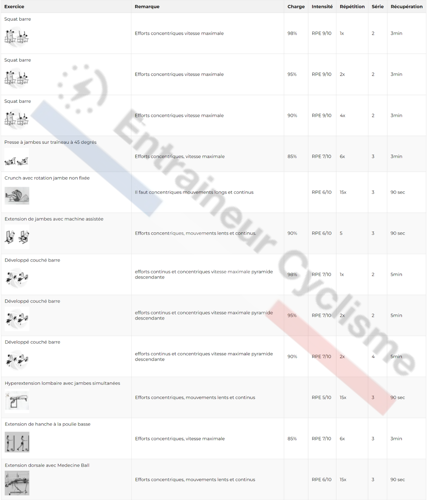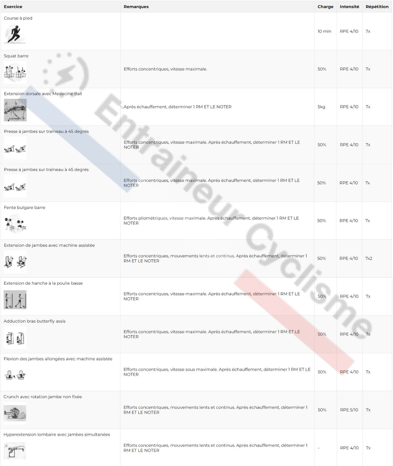 Ces trois semaines d’exercices répétés constituent une phase d’accumulation, où le volume et la charge de travail sont stables, permettant au corps de construire une base solide de force et d’endurance. Une fois cette phase terminée, vous pouvez passer à un cycle plus intensif ou varié, avec de nouvelles bases renforcées.